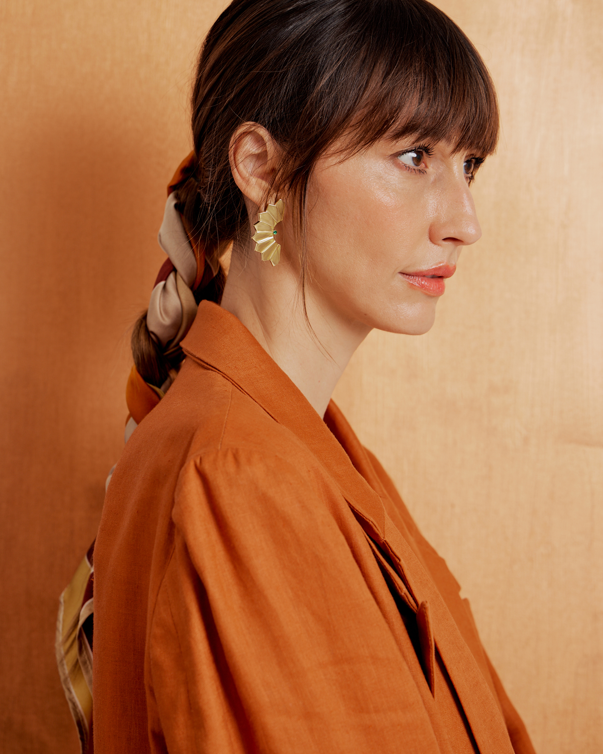 Lenço de seda acetinada — 86 × 84 cm de matéria que respira, desliza, existe de forma própria. A estampa é exclusiva da casa Luiza Perea, produzida em impressão digital de alta definição com a técnica Le Revers: um processo que leva a tinta ao avesso do tecido, tornando os dois lados perfeitamente estampados. Não há frente nem verso — apenas seda, de um lado ao outro. Para usar no pescoço, nos cabelos, no pulso, na bolsa. Ou simplesmente para ter.