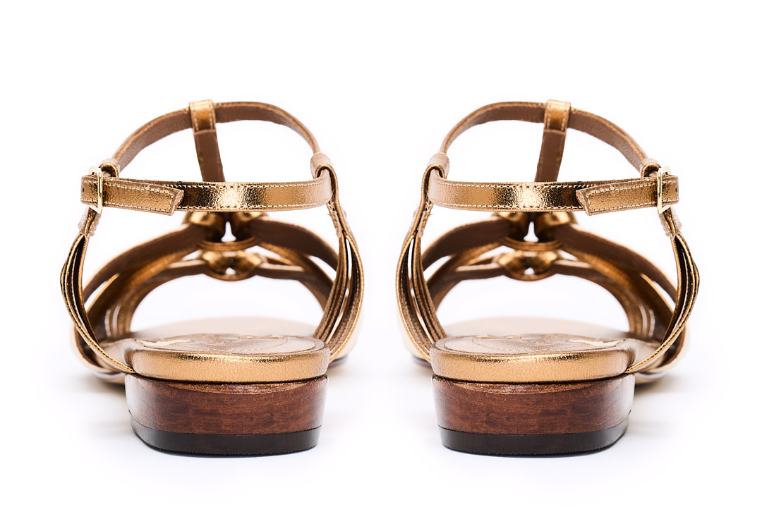 Deixe-se levar pela rasteira Iris, uma peça que nos transporta para o coração de vilarejos antigos, onde o tempo parece ter parado entre pedras esculpidas e portões de ferro forjado. Cada detalhe da Iris é uma homenagem a esse cenário, com seus arabescos em forma de flores e plumas, talhados no macio couro de cabra. Feita em couro de cabra no tom off-white e ouro envelhecido. Solado de couro de vaca com antiderrapantes de borracha. Saltinho 1,5cm. Calça fiel à numeração.